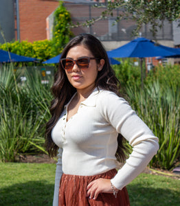 Taupe/Cream Striped Crop Sweater